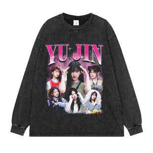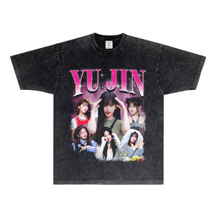 透气印花男女款 复古水洗做旧数码 美式 t恤IVE YuJin安宥真短袖