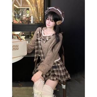 美拉德套装 格纹百褶裙2025秋冬新款 裙 假两件针织毛衣 松果收藏家