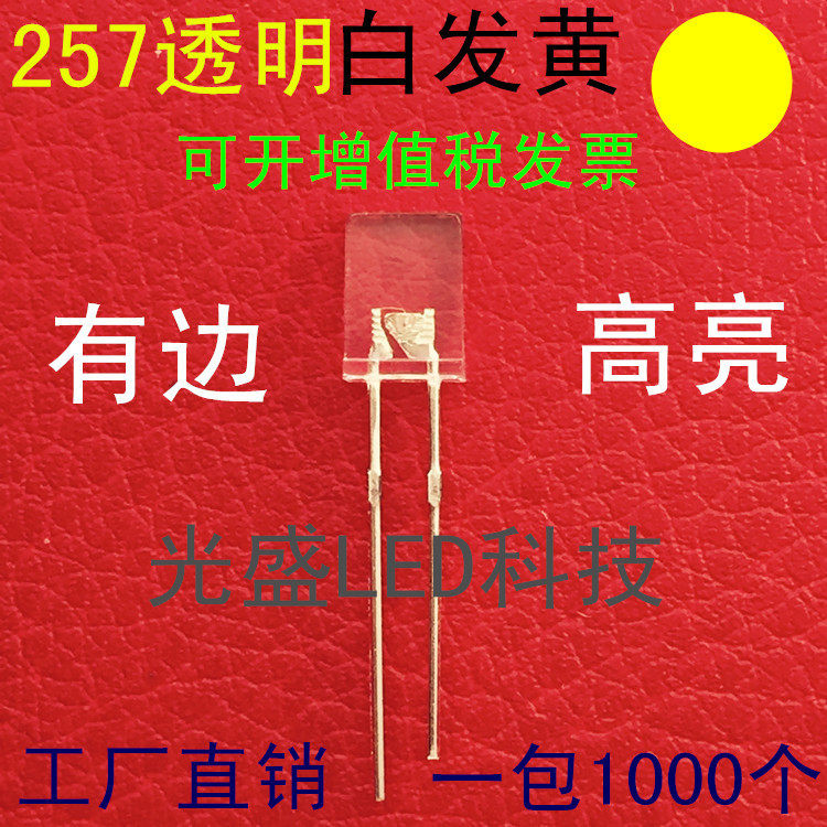 方形高亮257白发黄色LED发光二极管透明2 7白发黄色黄光黄灯