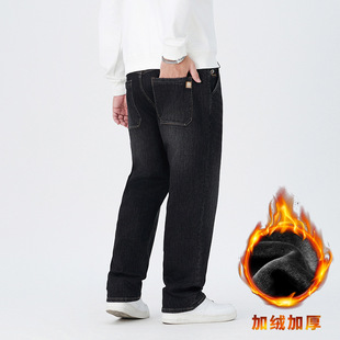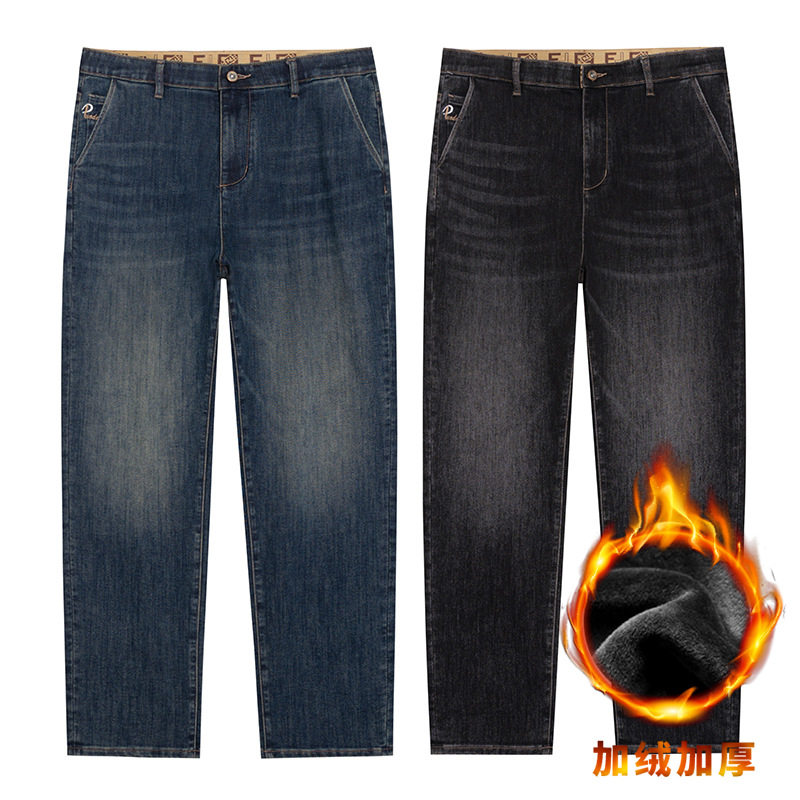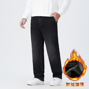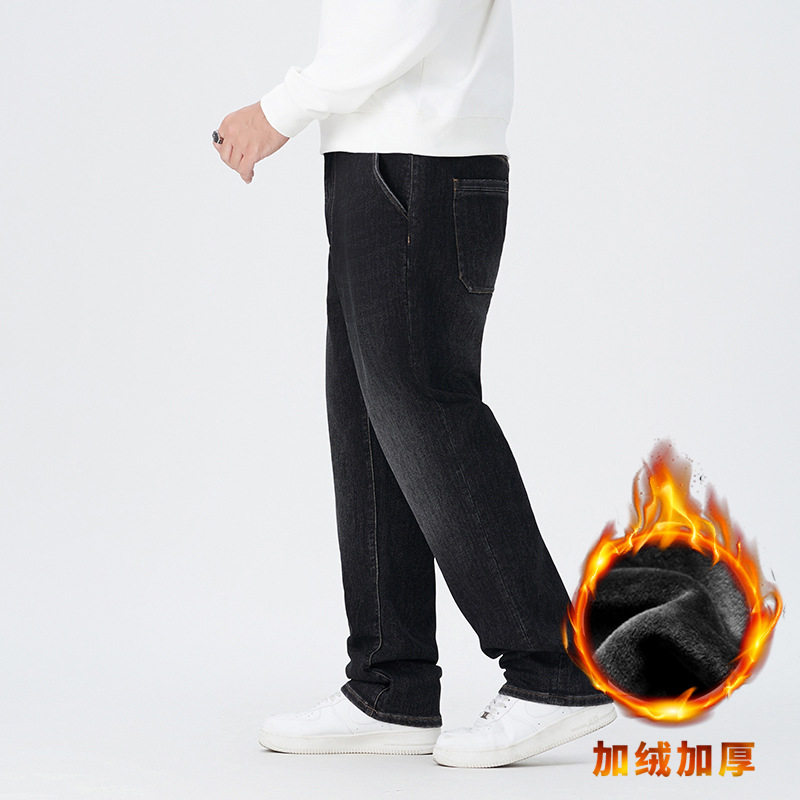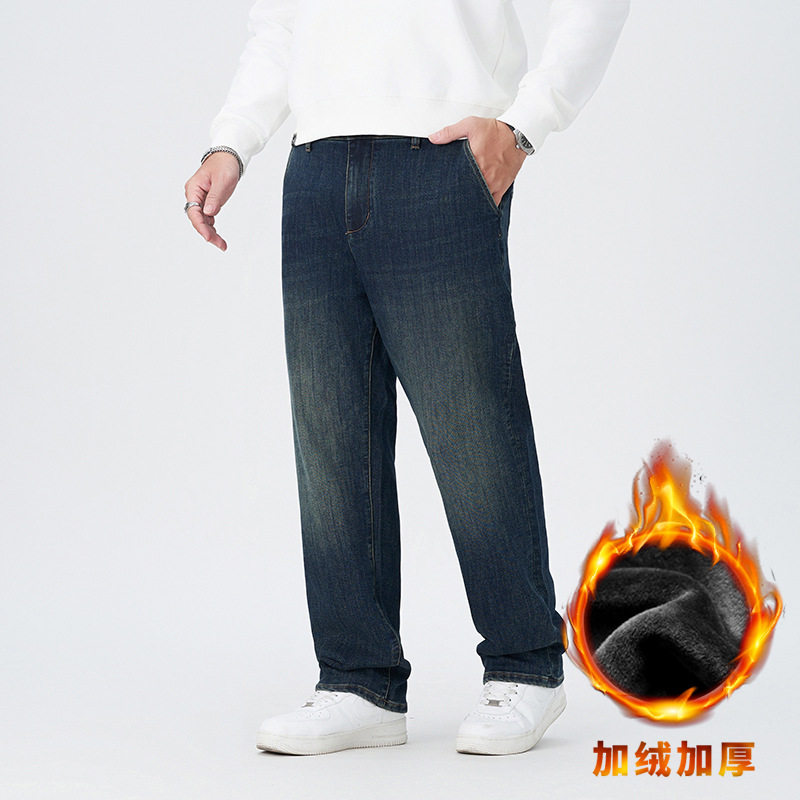 大码 长裤 下装 加绒保暖抗寒复古直筒加厚宽松男士 冬装 澳羊绒牛仔裤