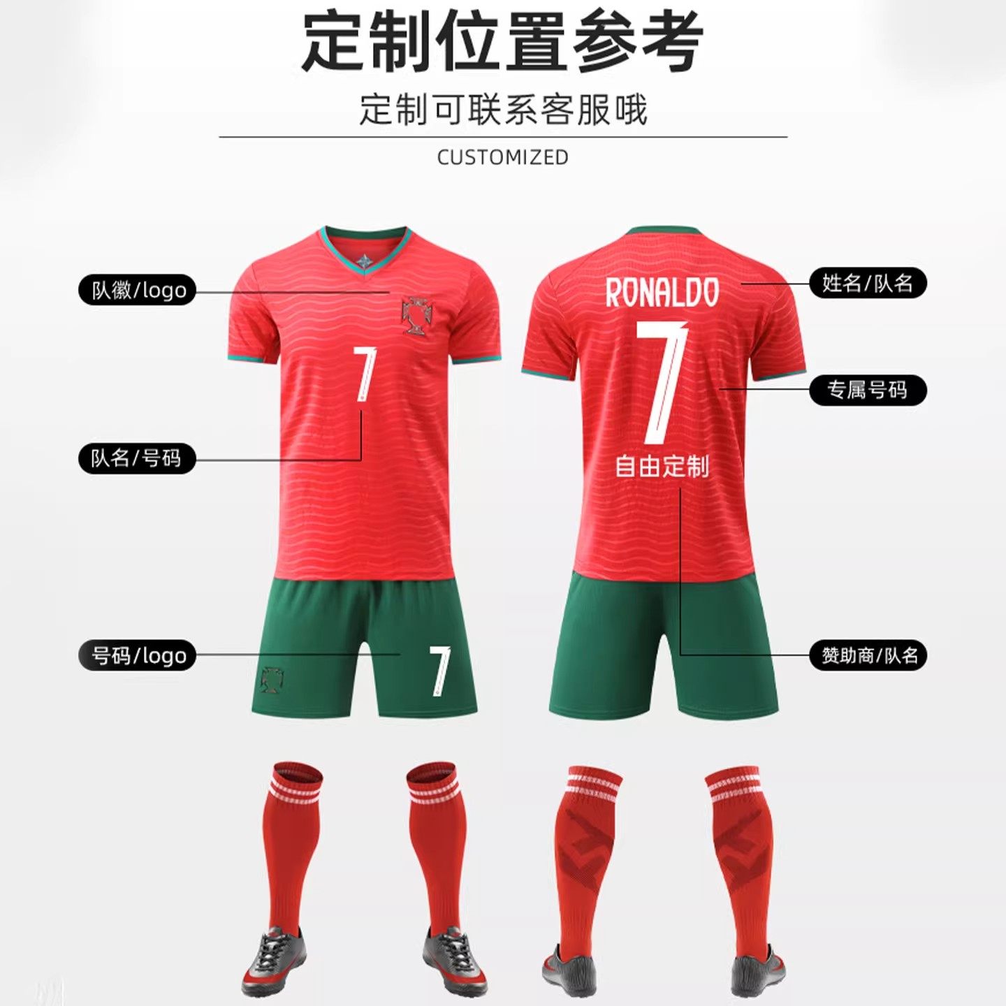 2026葡萄牙球衣世界杯7号c罗国家队球衣成人足球训练服套装 男定制