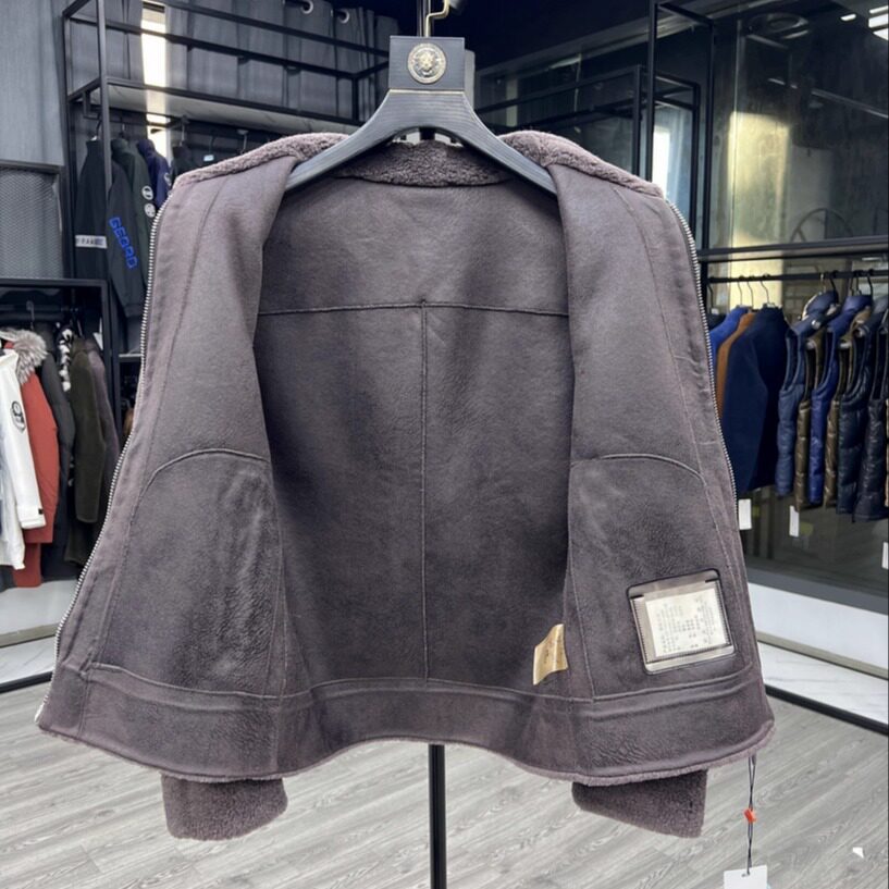高货皮毛一体外套翻领日系青年秋装 颗粒绒皮衣加厚暖感休闲男外衣
