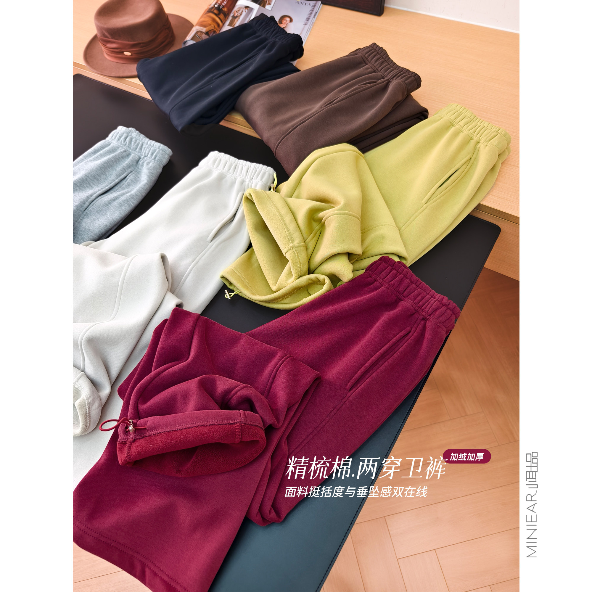 萣染六色 内抽绳休闲裤 精梳棉 奥粒绒加绒 女 两穿脚口 小耳出品