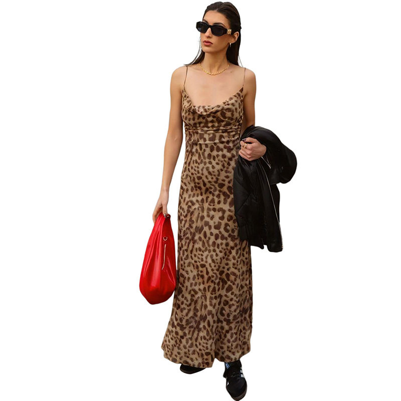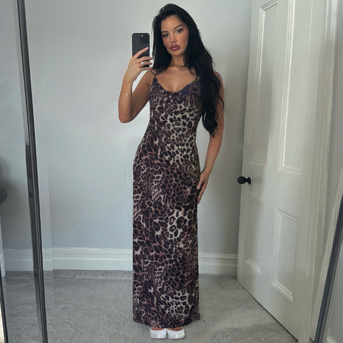 slim dress春夏时尚 fit lace 性感领收腰豹纹露 sleeveless Sexy
