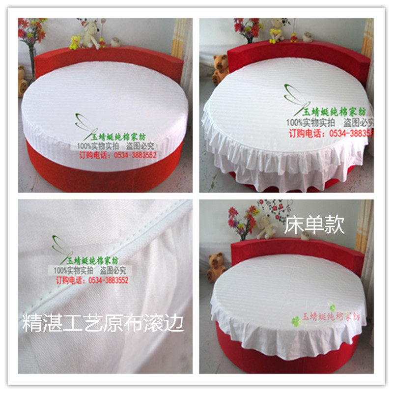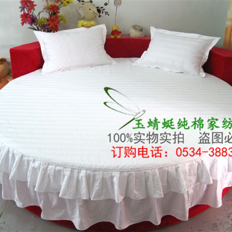 宾馆圆床四件套纯白圆床单圆床笠缎条加厚圆床罩床裙被套纯棉 包邮
