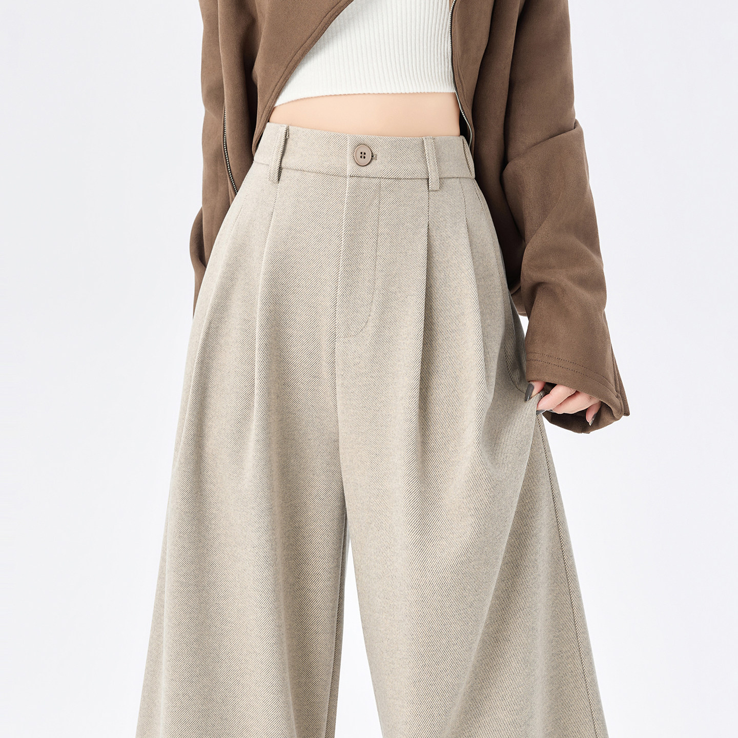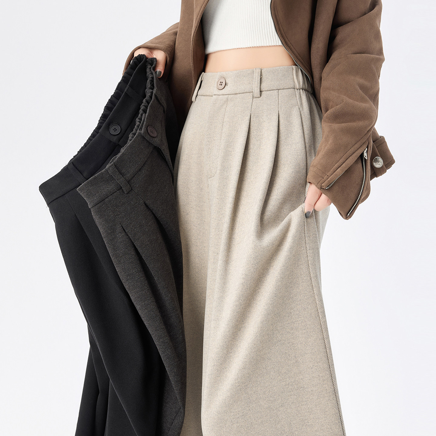 子 小个子加厚八分搭配马丁靴宽松九分直筒裤 毛呢阔腿裤 女秋冬季