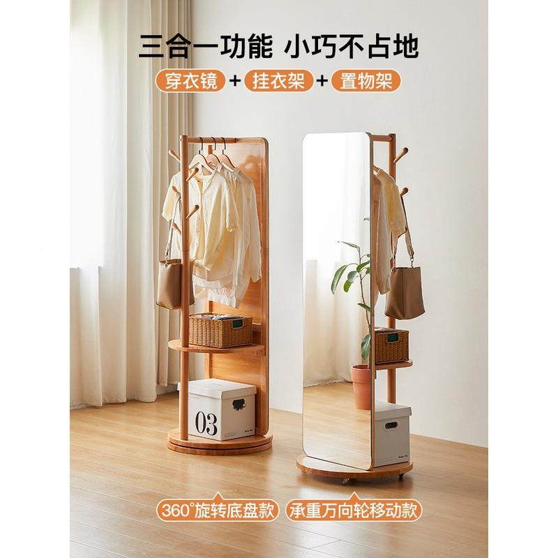 可旋转实木衣镜衣架衣帽架一挂穿体试衣镜室卧落地全身镜家用UHR