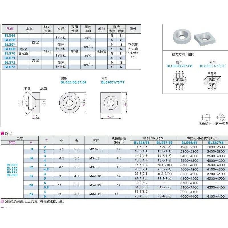 BLS67 BLS68 磁铁BLS65 T5.5 A20 平头螺栓止动型 A15