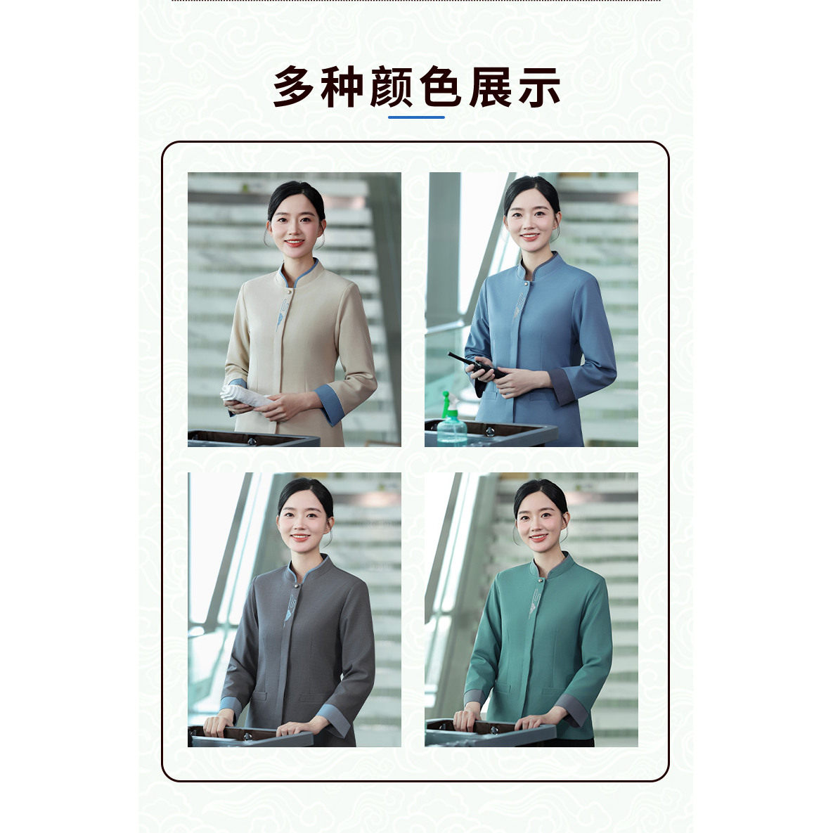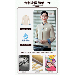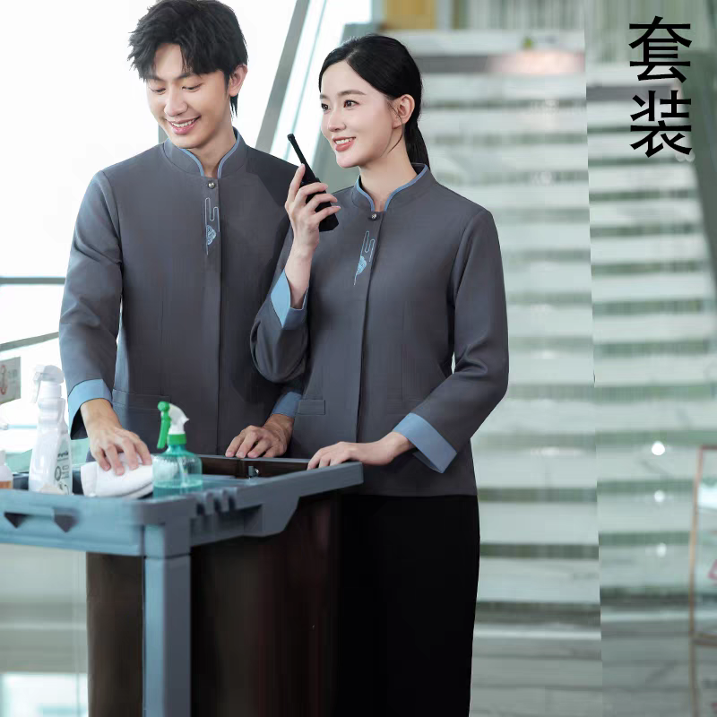 新式 秋冬酒店小区物业商超清洁工印绣logo 高级立领保洁工作服长袖