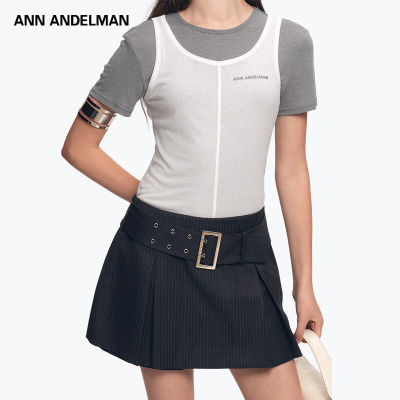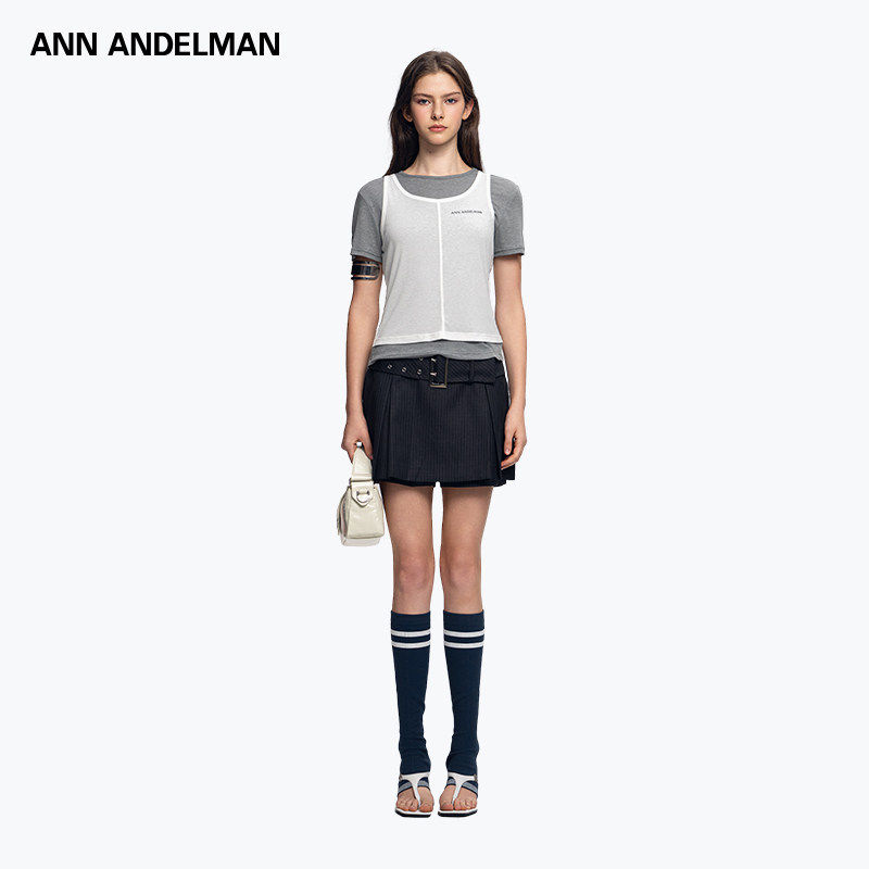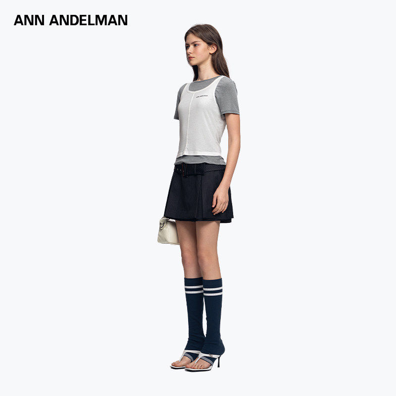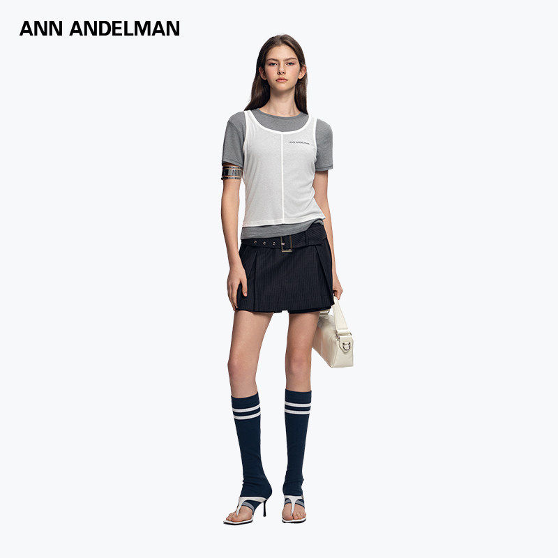 ANDELMAN拼色设计感套头短袖 ANN T恤假两件针织上衣 明星同款
