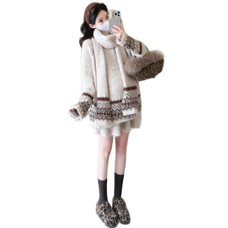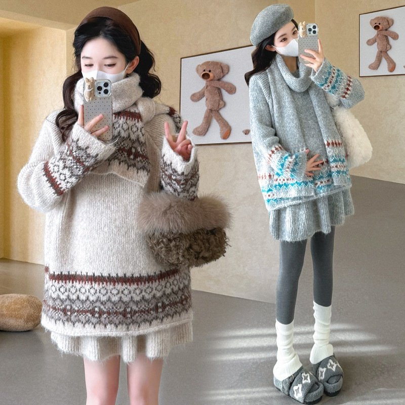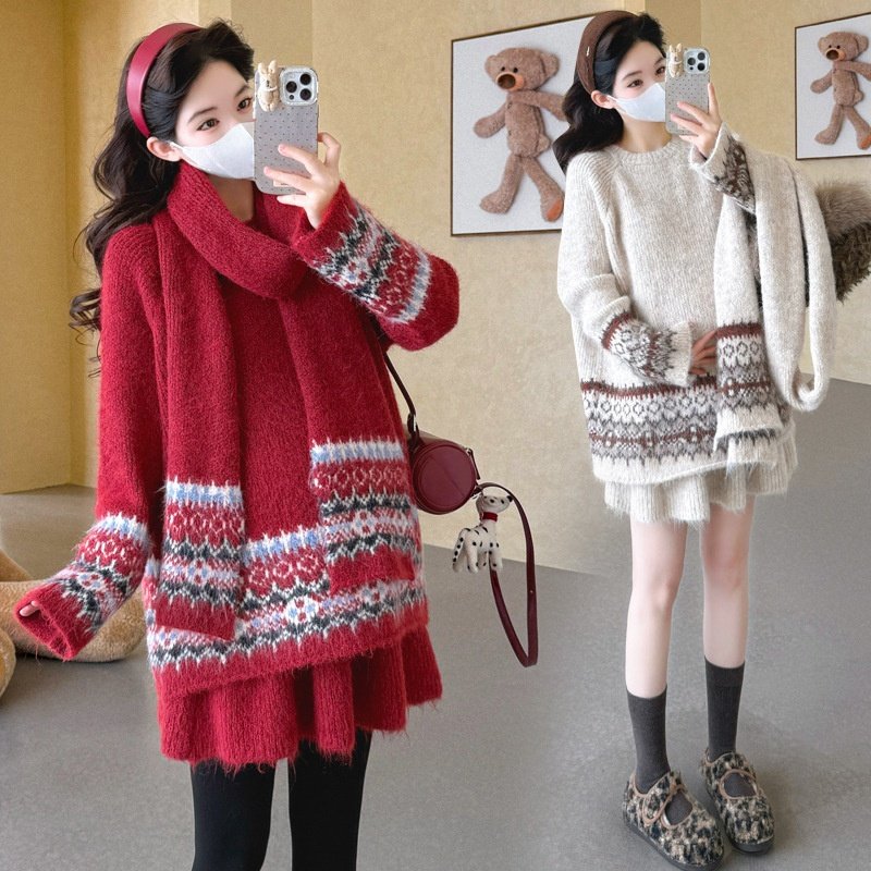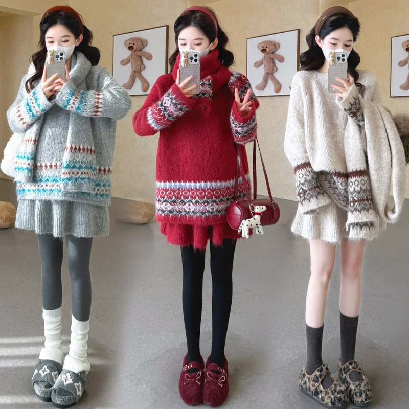 女冬季 套装 撞色拼接时尚 森女部落甜美风木耳边套头针织马甲新款
