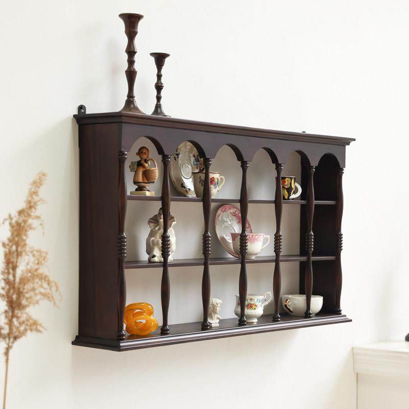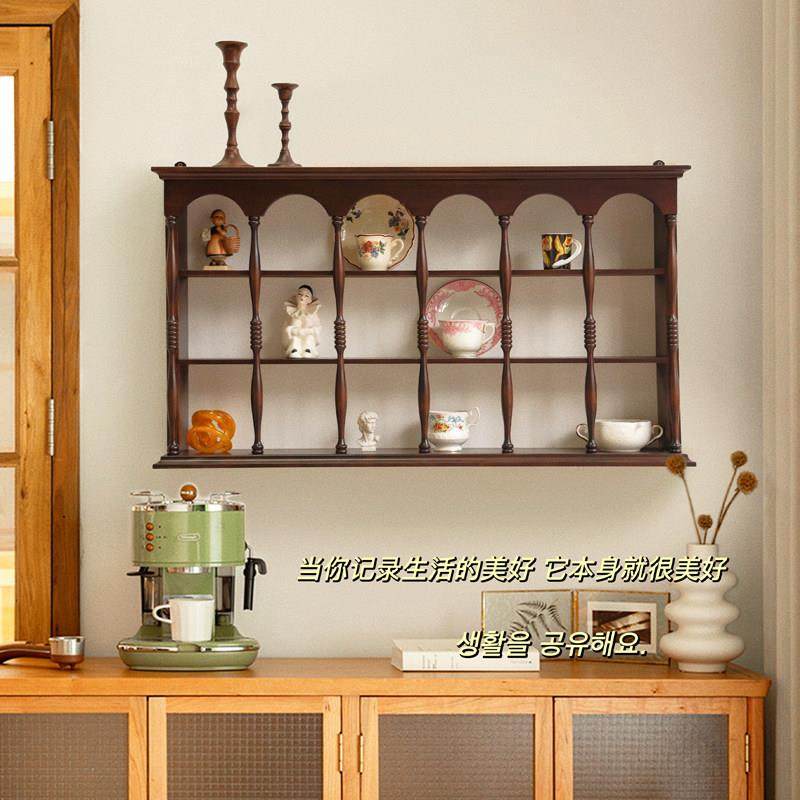 加安加丽复古壁橱欧式 咖啡杯展示柜收纳架壁挂置物架实木中古杯架