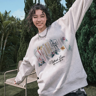 宽松大码 小个子2025新款 胖mm圆领无帽灰色上衣 加绒卫衣女款 春秋季