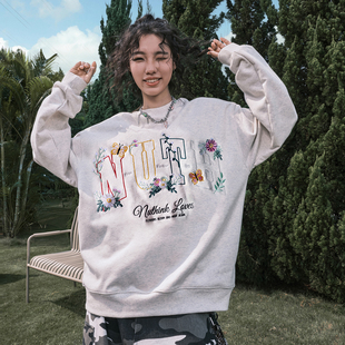 卫衣2 高街复古花卉十字架字母印花秋冬连帽情侣装 特大码 300斤美式