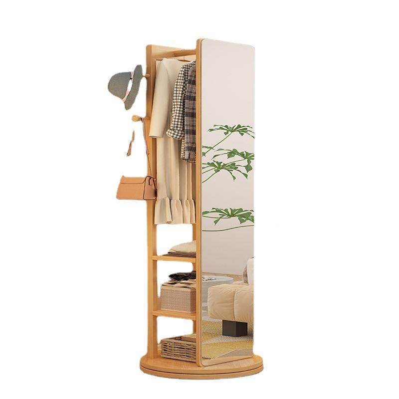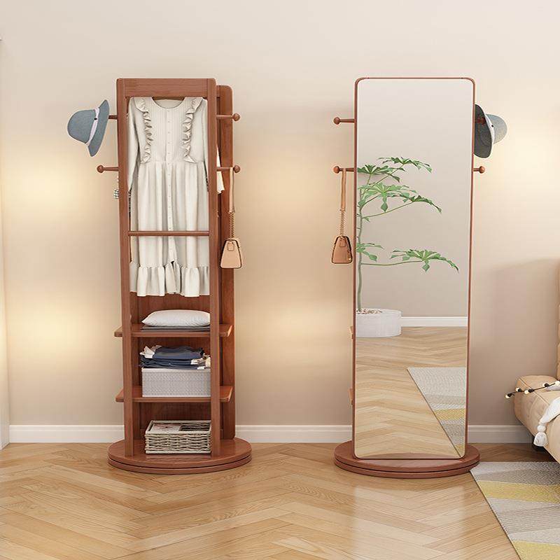 全实木穿衣落镜户全身镜衣帽架一体小型试衣镜挂地衣架旋VOZ转收