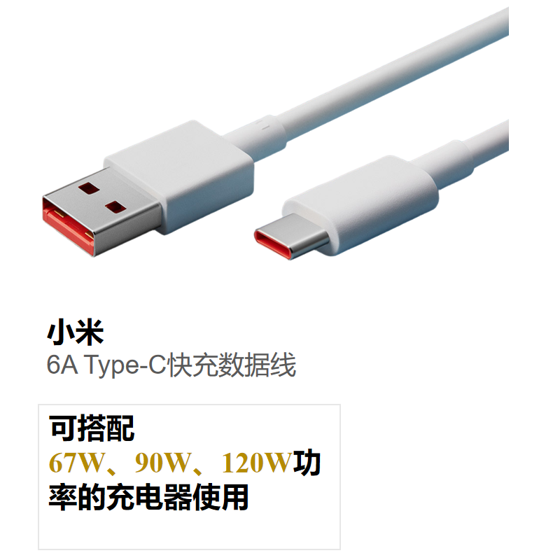 红米手机67W90W120W充电器充数据线传输线带金标小数点 C充电线官方正品 小米原装 6A快充数据线Type