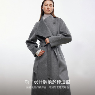 慵懒风双面羊毛大衣女中长款 灰色毛呢外套高级感
