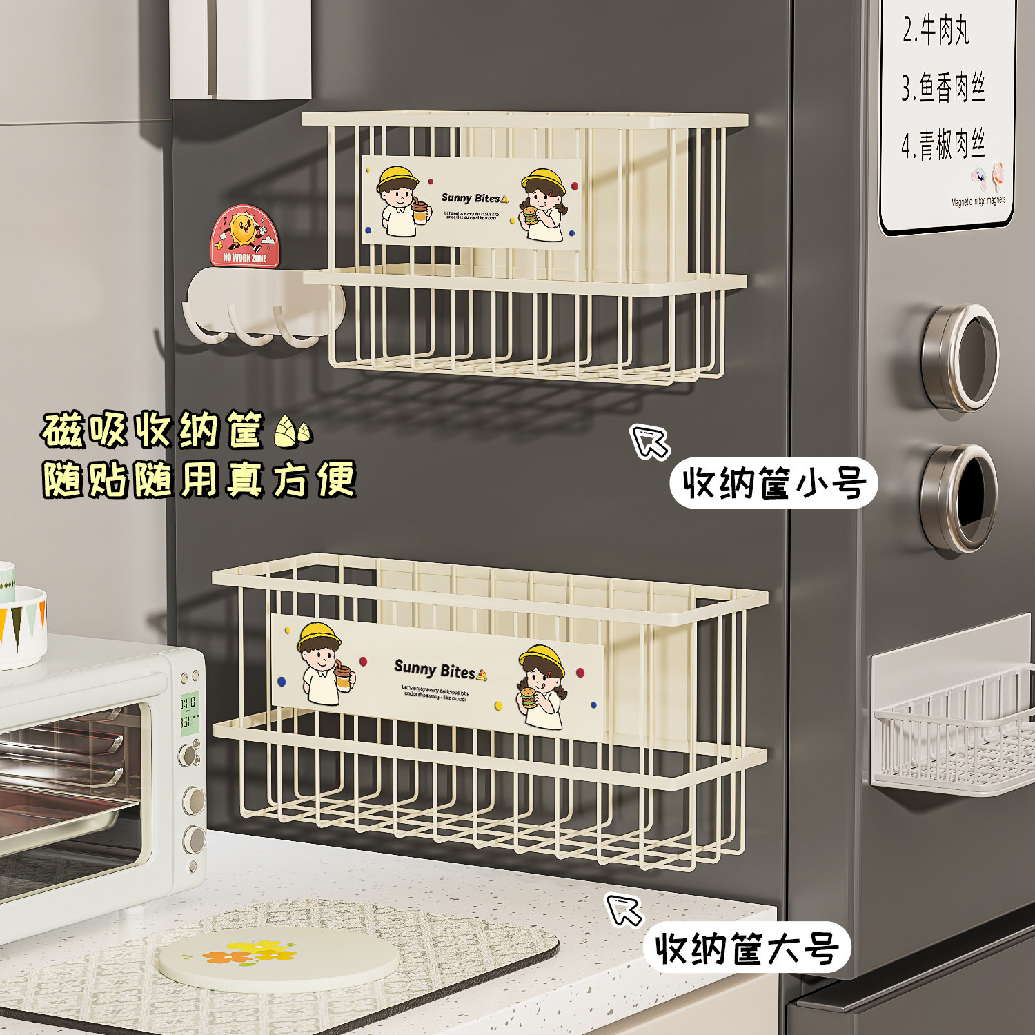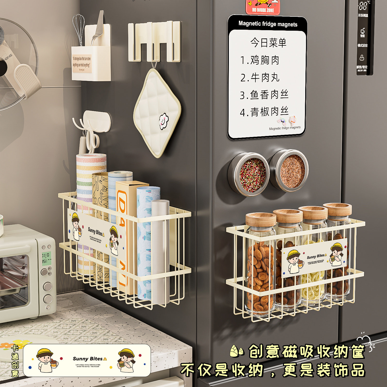冰箱磁吸置物架侧面收纳神器磁贴壁挂封口夹保鲜膜纸巾架调料挂钩