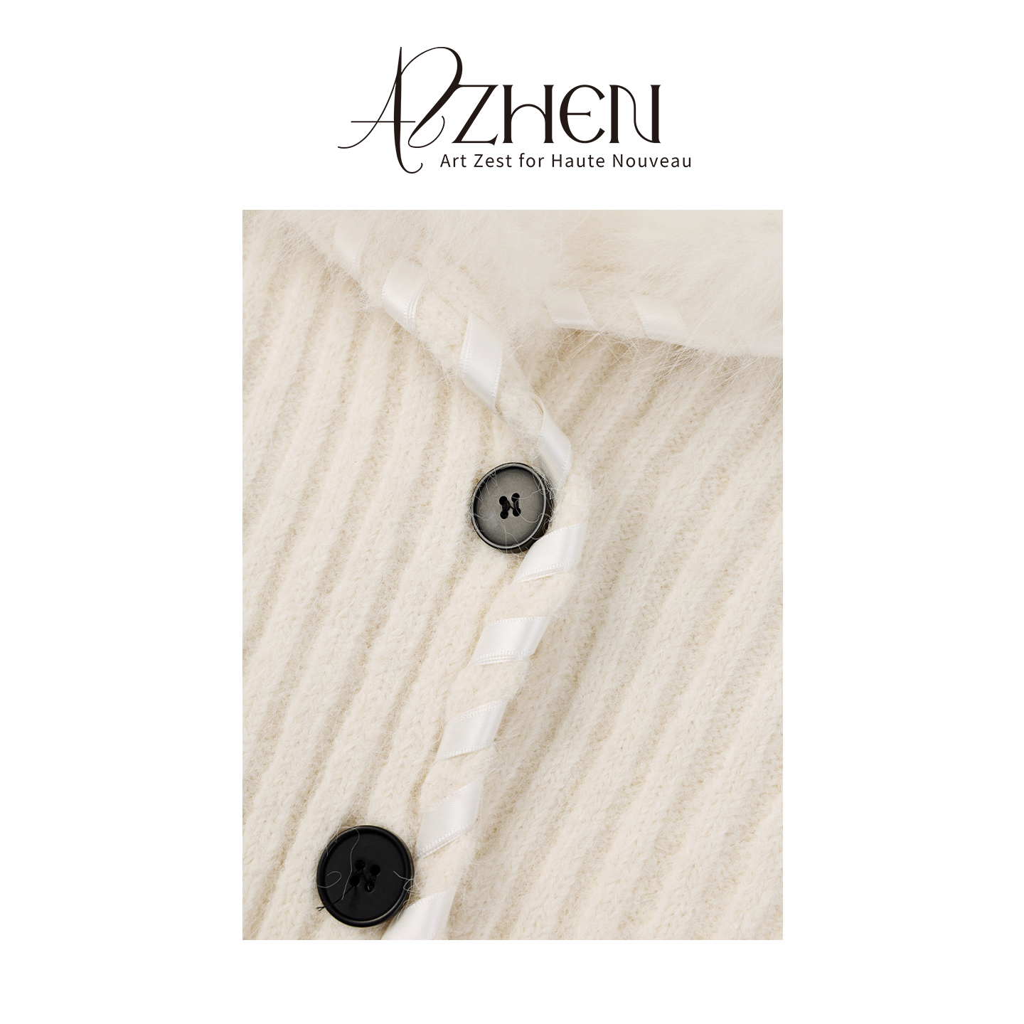 秋季 大翻领针织衫 慵懒毛衣狐狸毛拼接外套女 时髦出圈 AZZHEN