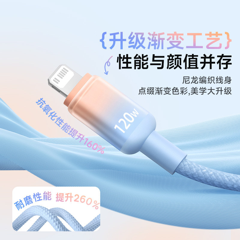 6s平板车载通用快充电线2米 6A超级闪充电线渐变120W编织手机数据线适用苹果iPhone14promax
