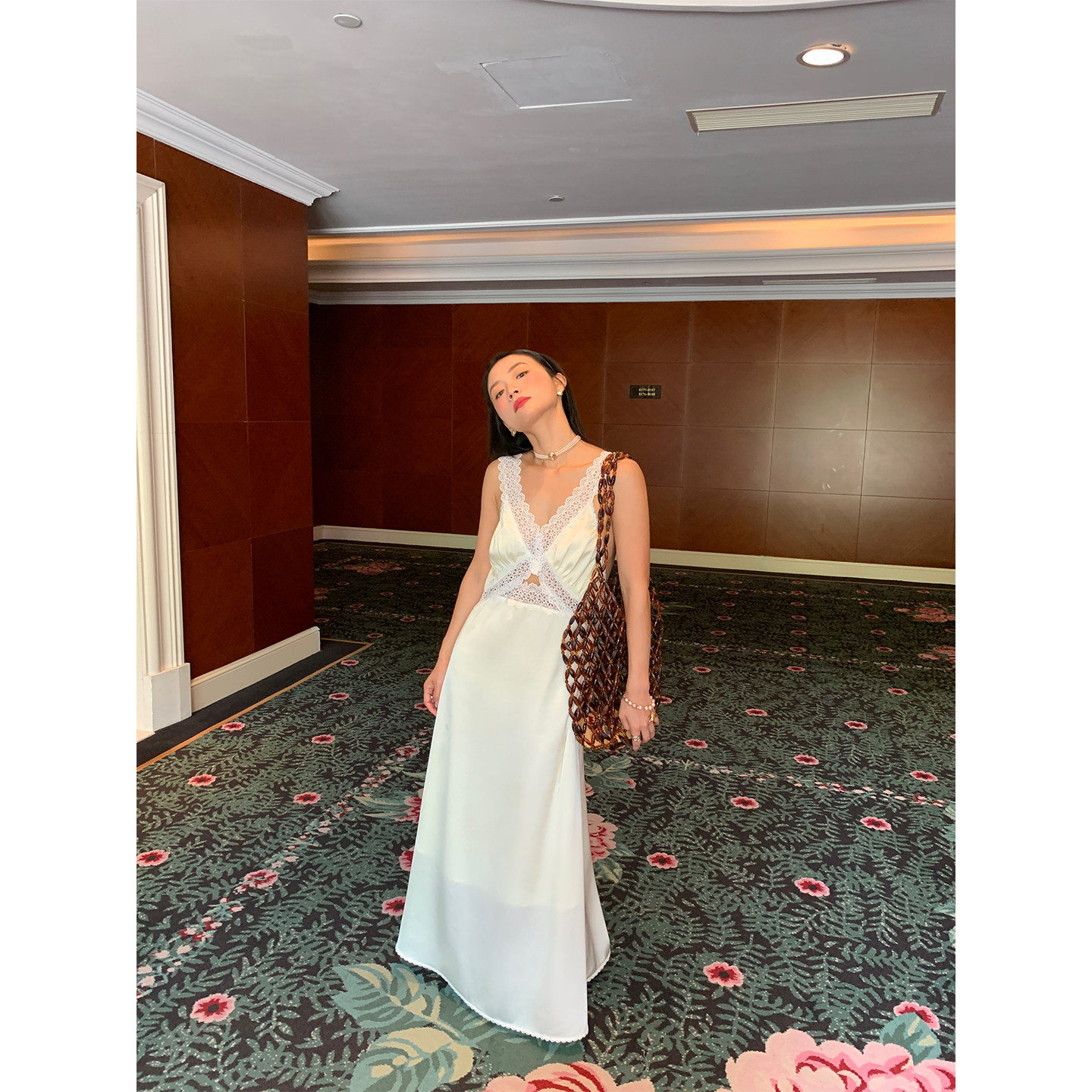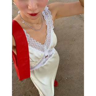 显瘦漏背裙子蕾丝裙小众 夏季 落落狷介 海边度假连衣裙2025年新款