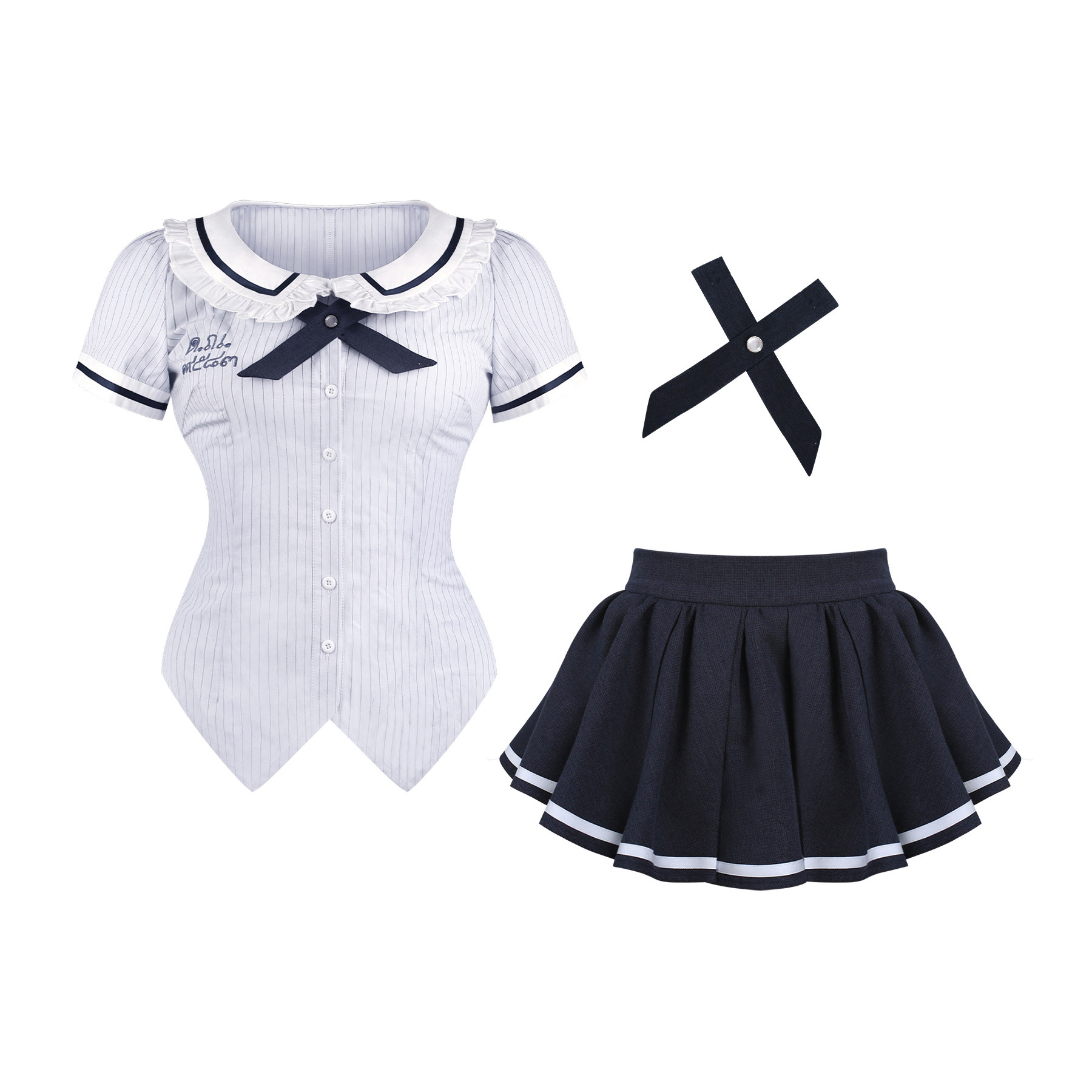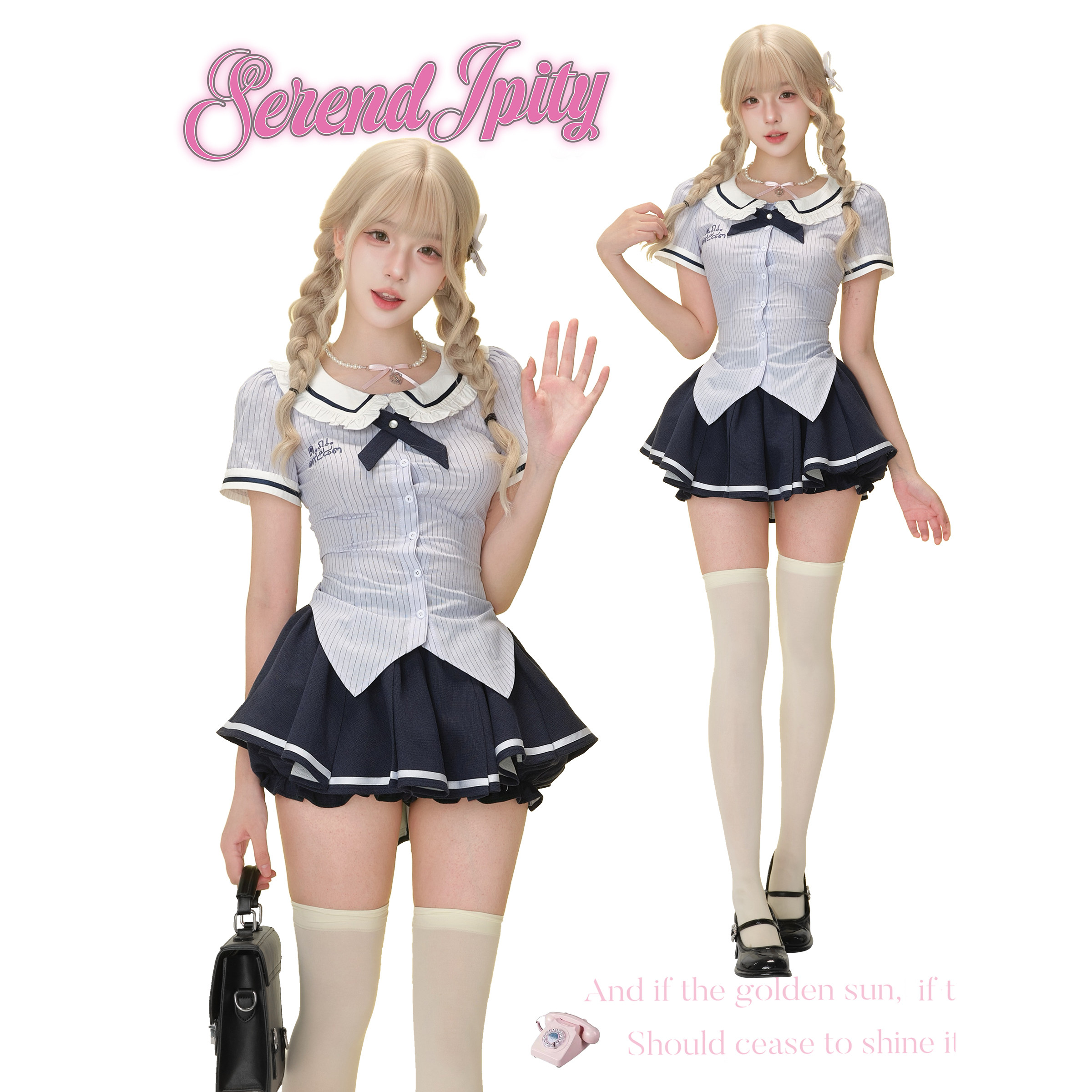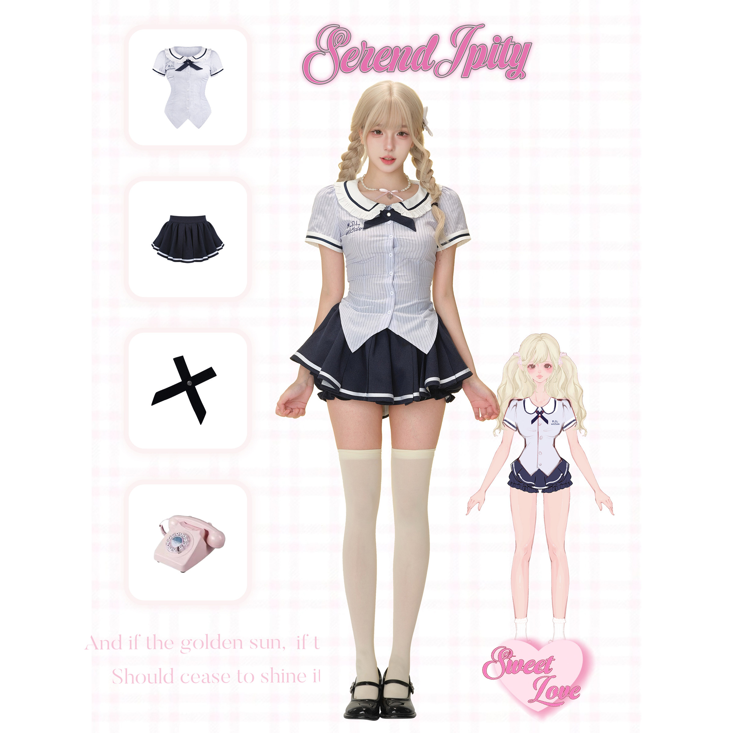 2025新款 女款 套装 蓝色衬衫 蓝色短裙女 少女椰子 送领结 小水恋恋