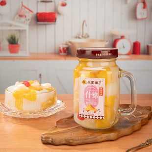 2罐山楂什锦水果玻璃瓶 林家铺子手把杯黄桃罐头550g 香菇双12