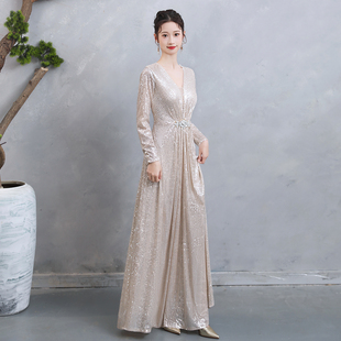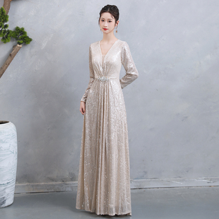 法式 高级质感宴会主持人高端轻奢小众连衣裙 亮片晚礼服女2025新款