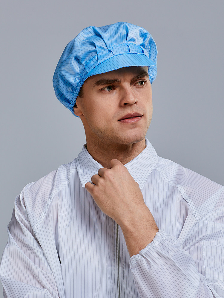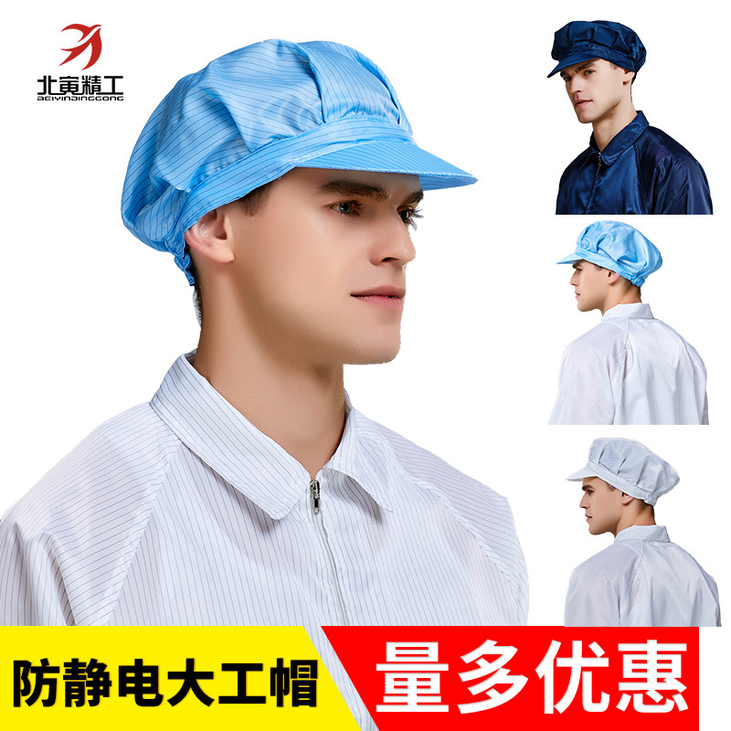 蓝白工作防静电宽檐鸭舌帽男女大工帽无尘车间帽食品厂防尘帽