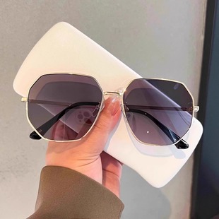 2025复古美式 金属小框圆脸墨镜女高级椭圆防晒街拍凹造型太阳眼镜