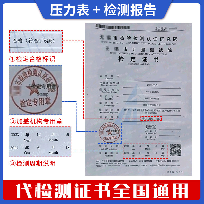 压力表带检测合格报告压力表水压气压表储气罐空压机安全阀压力表