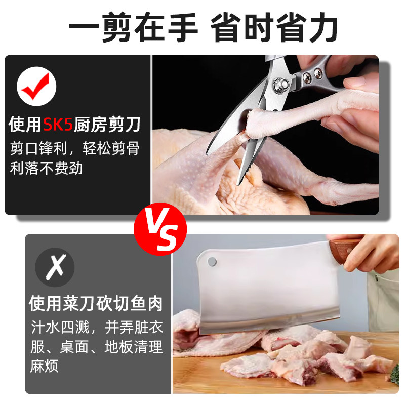 剪刀家用第五代SK5厨房剪刀不锈钢家用多功能剪骨杀鱼食物剪子