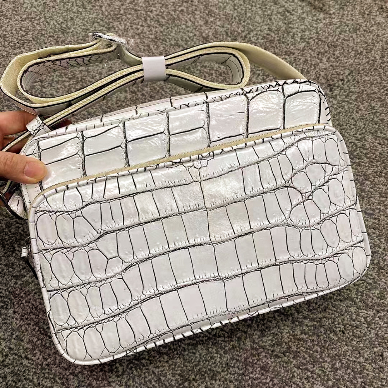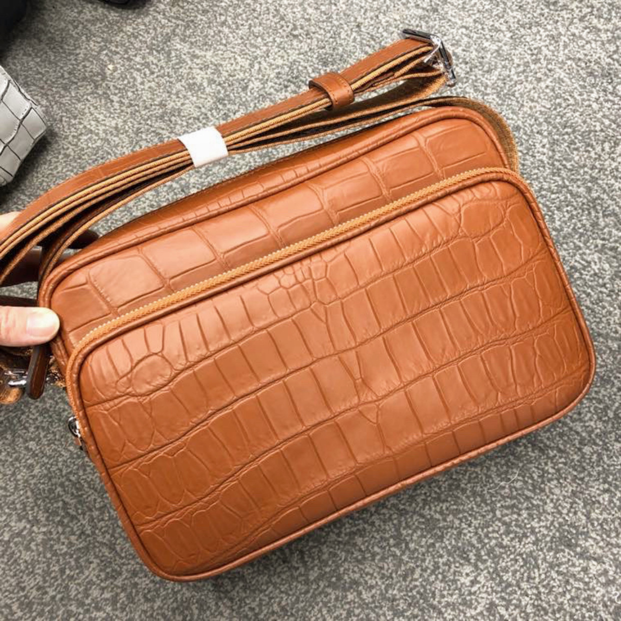 尼罗鳄鱼皮邮差包男士 真皮相机包胸包商务大容量单肩斜跨包小方包