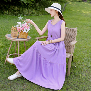 2026新款 背心裙度假风棉绸连衣裙显瘦 三亚海岛绝美海边沙滩裙无袖