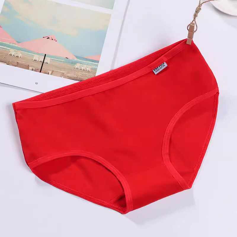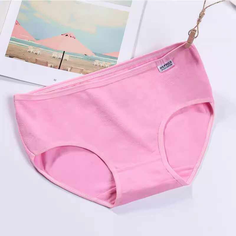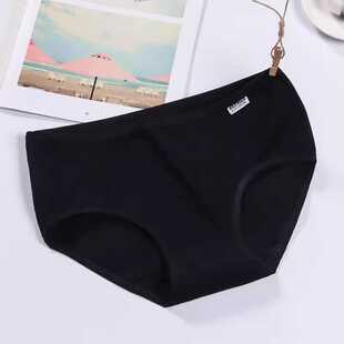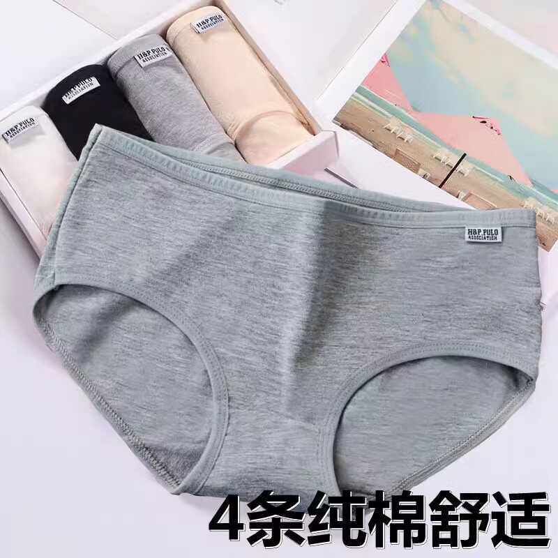 纯色提臀透气纯棉裆三角裤 收腹韩版 头 女士中低腰大码 4条纯棉内裤