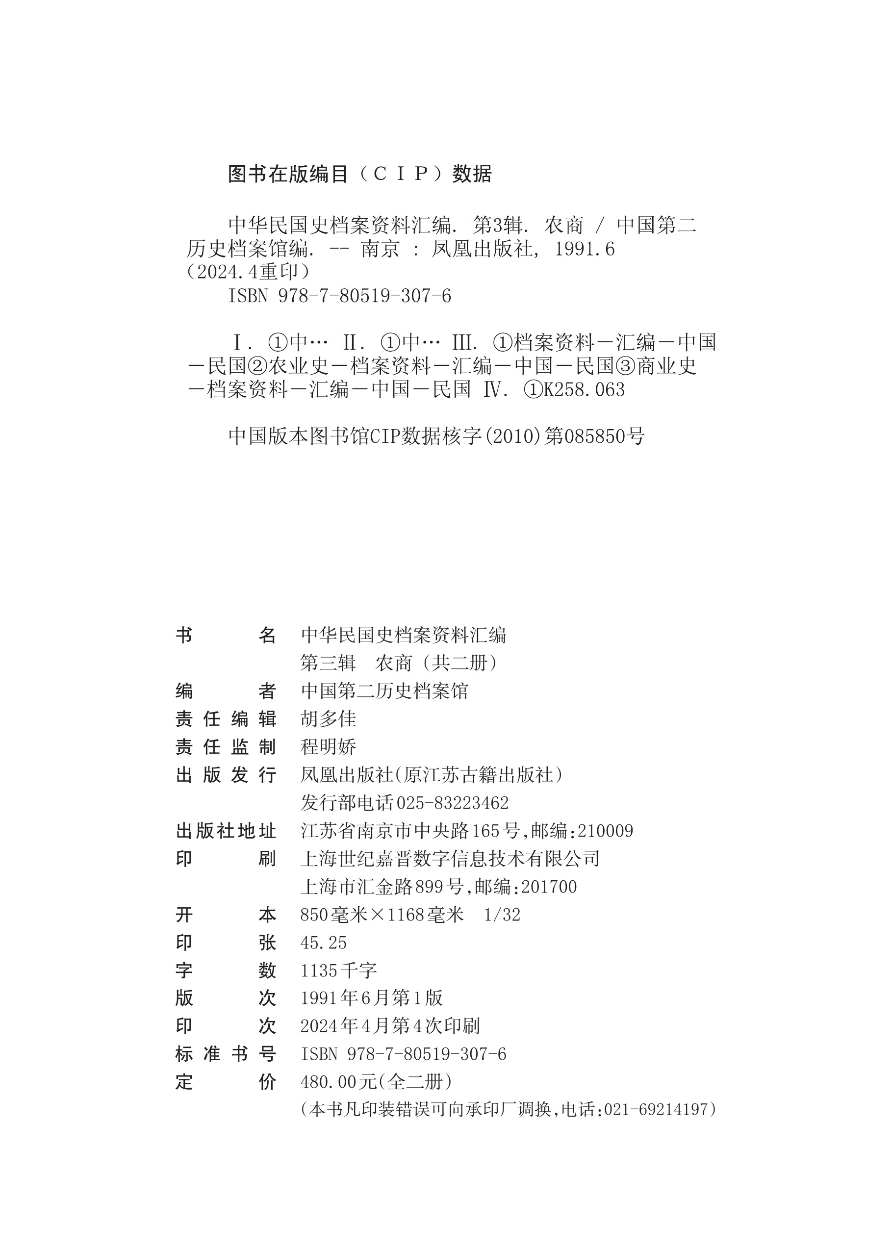 1版 全2册 社官方旗舰店 新华书店正版 凤凰出版 农商 中国第二历史档案馆编 4次 中华民国史档案资料汇编 图书 第三辑