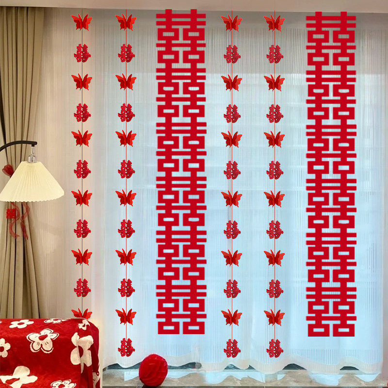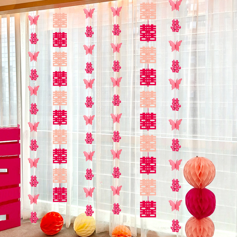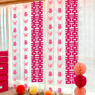 婚房布置结婚客厅卧室窗帘装 饰长条喜拉花挂件男女方新房蝴蝶挂饰