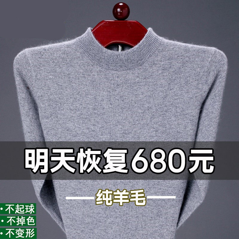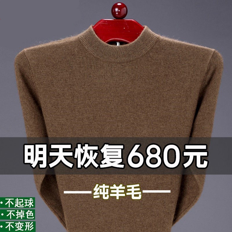 打底羊毛衫 加厚半高领毛衣中年冬季 男士 藏源绒100羊毛羊毛衫