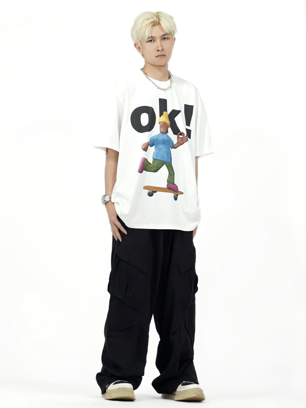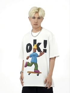 高街潮牌圆领国潮T恤上衣 男女宽松夏季 DHSS美式 复古卡通人像短袖