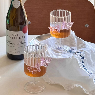 蝴蝶高脚酒杯香槟酒杯鸡尾酒杯红酒杯家用喝水杯高硼硅玻璃杯子