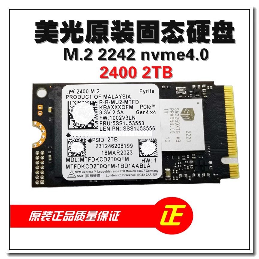 2242型号笔记本台式 美光原装 nvme2TB M.2 固态 固态硬盘2400
