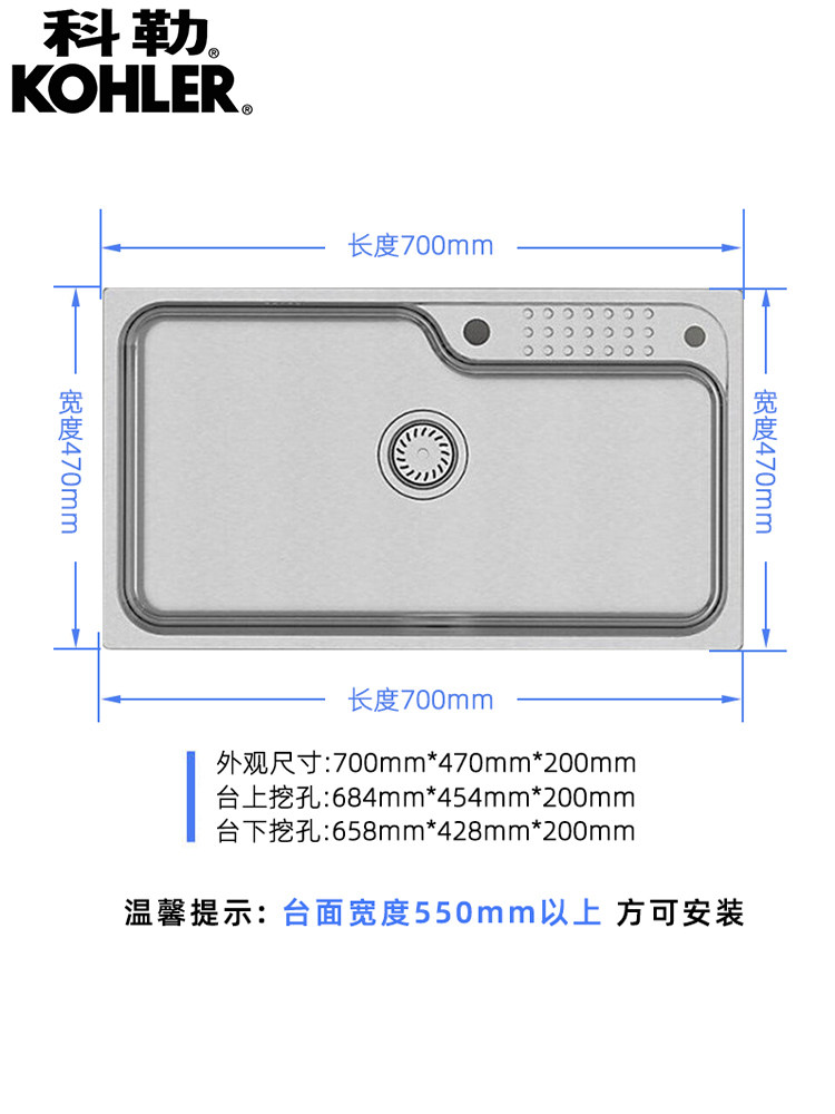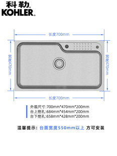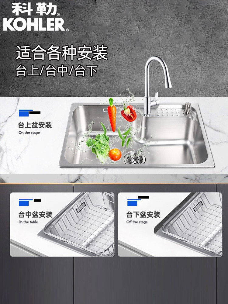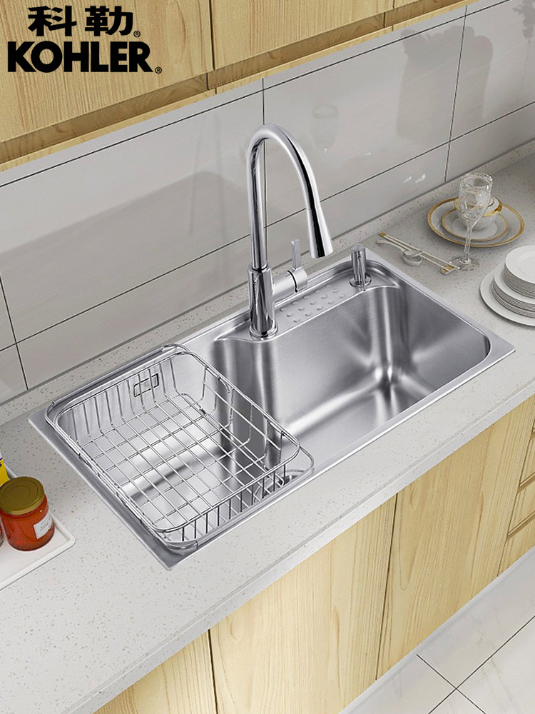 科勒水槽大单槽洗菜盆台上台下式 304不锈钢洗碗槽厨房水槽26957T