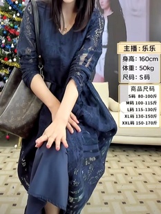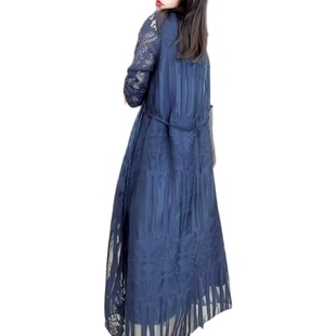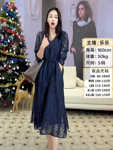 蕾丝连衣裙气质v领镂空裙子显瘦大码 2025年新款 蓝色裙子 女装 秋款