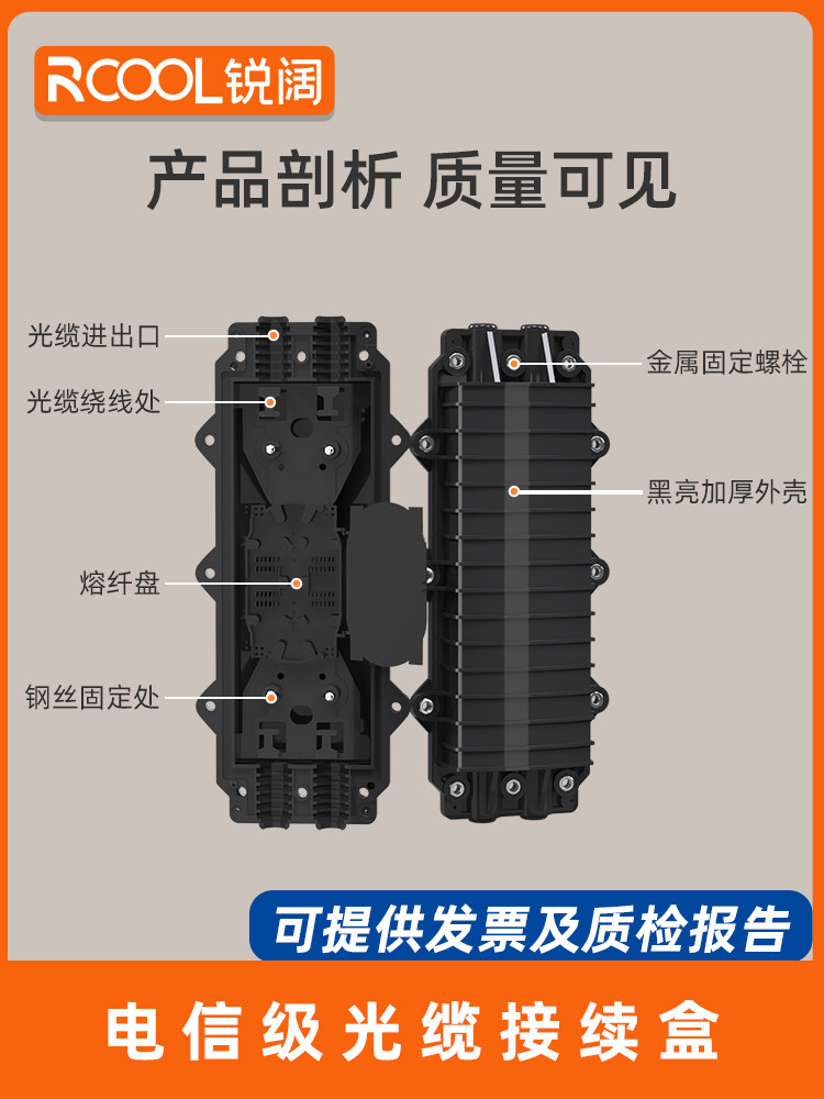 芯接头包光纤接线盒卧式 二进二出接续盒两进两出光缆熔接盒 锐阔12芯光缆接头盒加厚ABS国标24芯