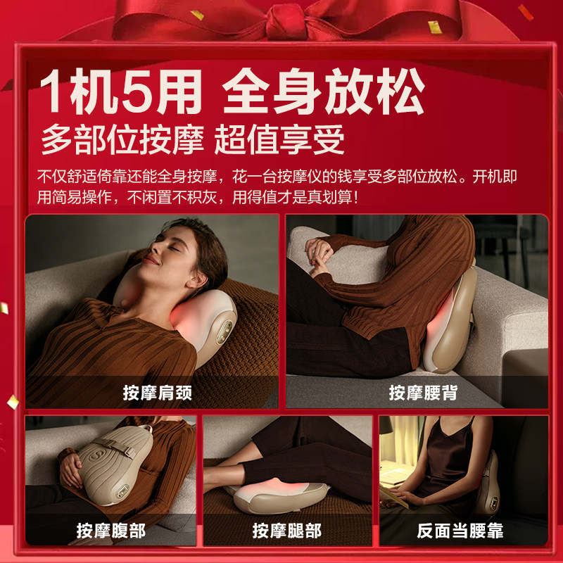 新年礼物SKG腰部按摩仪T5 2Ultra肩颈按摩仪办公车载全身热敷靠垫
