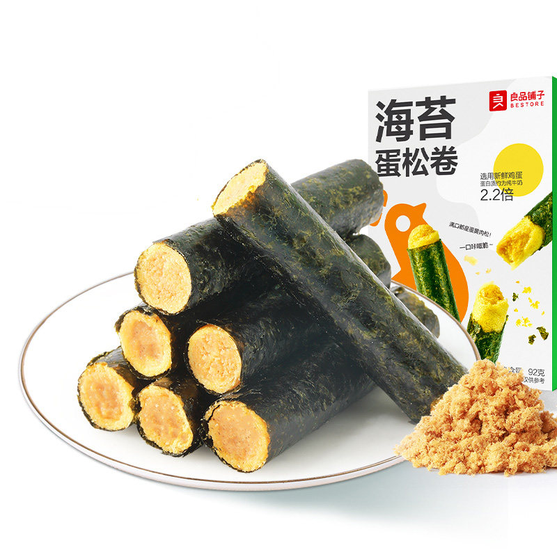 良品铺子海苔蛋松卷92gx3盒港式 咸味肉松卷儿童零食品夹心海苔脆