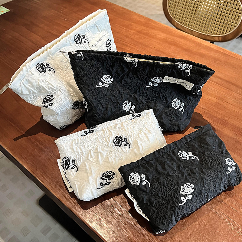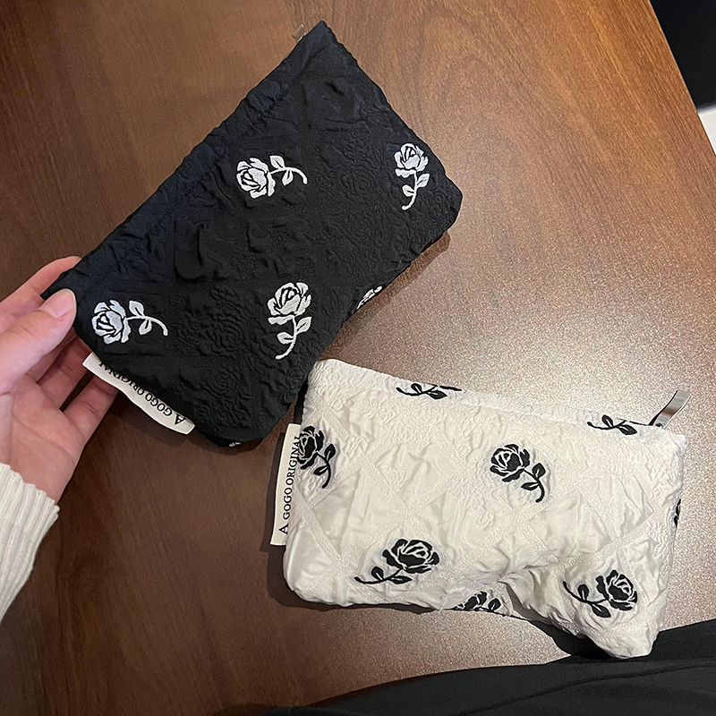 ins小众玫瑰小号化妆包小手拿包便携笔袋手机包内胆包钱包收纳袋