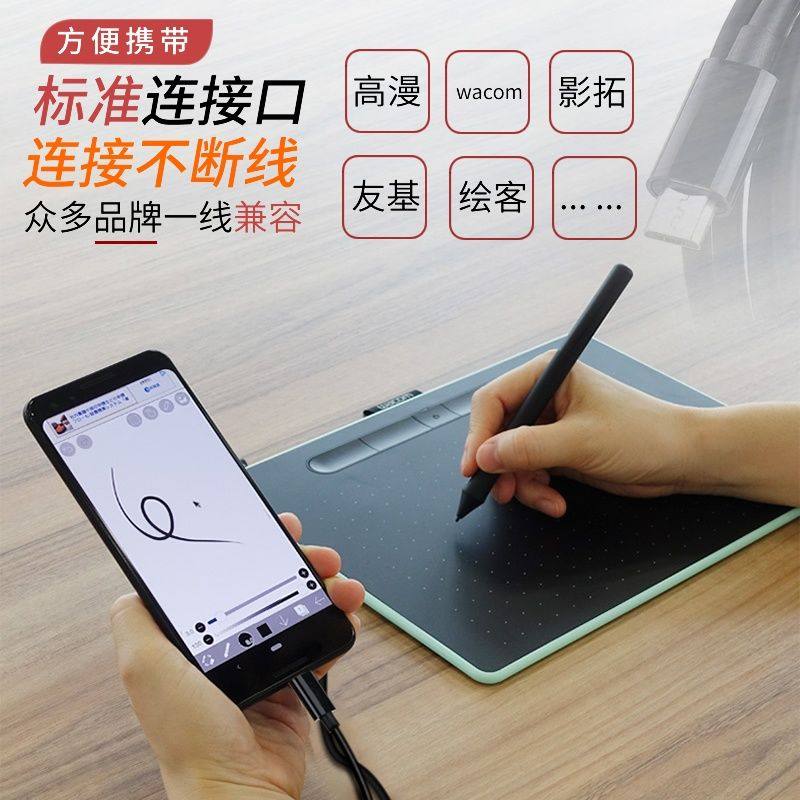 wacom影拓高漫数位板M356连接数据线平板电脑OTG手机typec转micro
