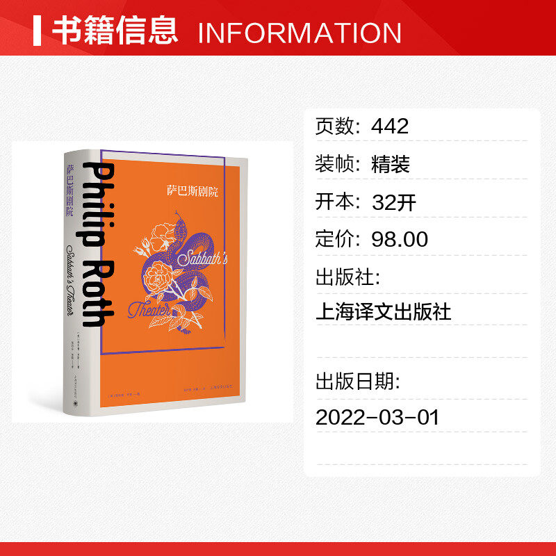 译 菲利普.罗斯全集 张听泉 萨巴斯剧院 外国小说文学 上海译文出版 菲利普·罗斯 图书籍 美 社 著 新华书店正版 张艳