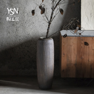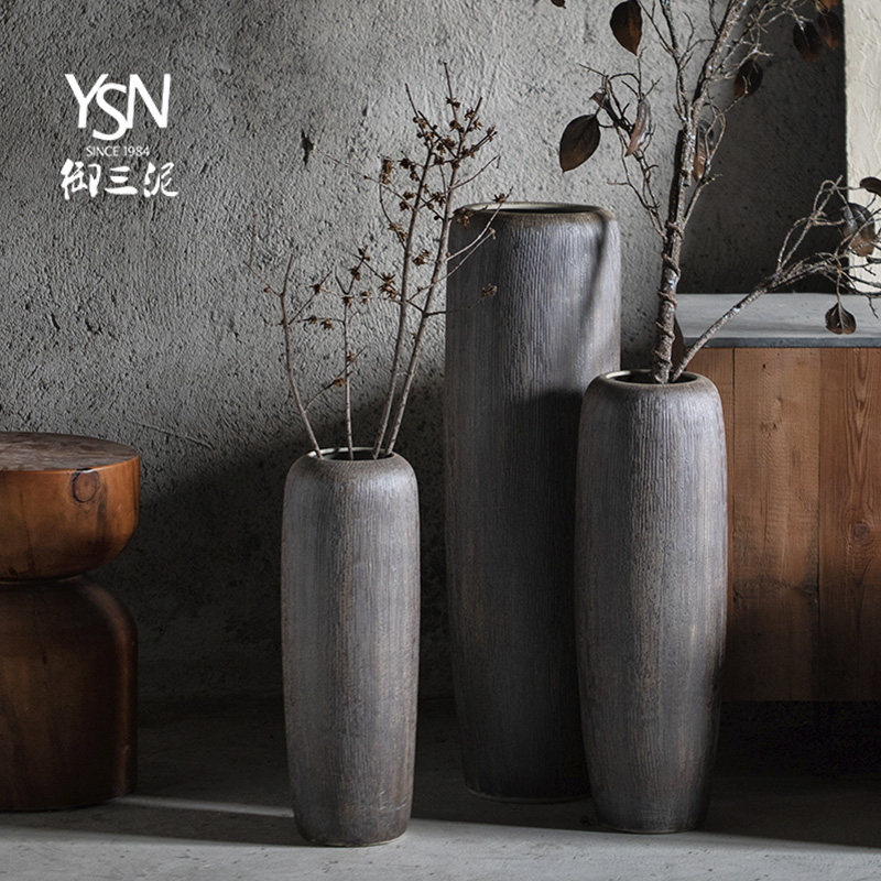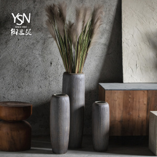 景德镇陶瓷大花瓶侘寂风创意家居落地大花盆插花器摆件干花装 饰品